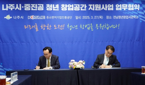 나주시는 지난 27일 빛가람동에 위치한 중진공 전남청년창업사관학교와 ‘청년 창업 공간 지원’ 사업 추진을 위한 업무협약을 체결했다고 28일 밝혔다.