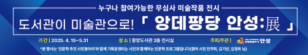 [금요저널] 안성시는 4월 15일부터 중앙도서관 전시실에서 ‘앙데팡당 안성:展’미술전시회를 운영한다고 밝혔다.