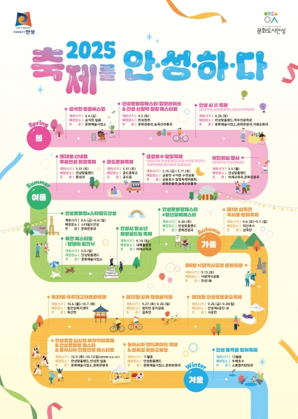 [금요저널] 안성시는 2025년 한 해 동안 시민과 관광객이 함께 즐길 수 있는 계절별 주요 축제 일정을 공개했다.
