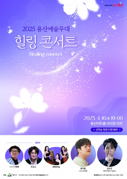 [금요저널] 서울 용산구는 바쁜 일상에 지친 구민들을 위한 ‘2025 용산예술무대 힐링콘서트’를 오는 4월 10일 오후 7시, 용산아트홀 대극장 미르에서에 개최한다고 밝혔다.