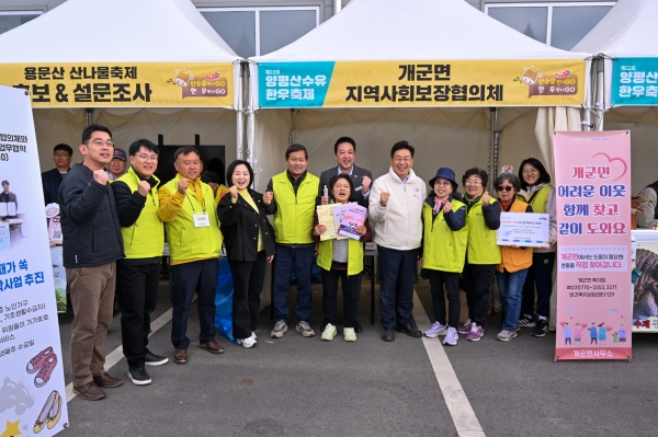 임병희 개군면장은 “축제 현장에서 방문객, 지역 주민들과 함께 소통하며 복지사각지대 해소를 위한 뜻깊은 시간을 가졌다”며 “앞으로도 지역사회보장협의체와 협력해 소외되는 이웃이 없도록 다양한 복지사업을 추진하겠다”고 말했다.