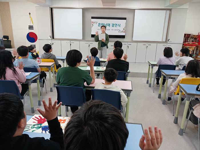 □ 2025년 4월 3일(목), 은풍초등학교(교장 윤인숙)는 전교생 27명을 대상으로 학생자치회 활동의 시작인“흔한남매 결연식”을 맺었다.