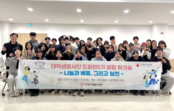 [금요저널] 안성시자원봉사센터는 4월 4일과 5일 대학생봉사단 드림런5기를 대상으로 ‘나눔과 배움, 그리고 실천’ 이라는 주제로 사랑의열매가 지원하는 성장워크숍을 성공적으로 마쳤다.