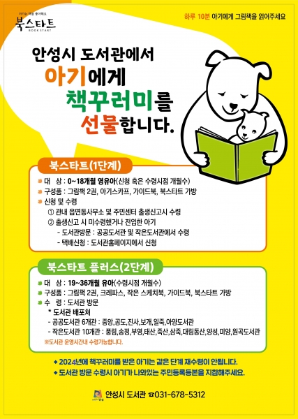‘북스타트’는 ‘책과 함께 인생을 시작하자’는 취지의 전 세계적인 독서진흥 운동으로 안성시에서는 영유아 발달 단계에 맞춘 북스타트, 북스타트 플러스 두 개 단계의 책꾸러미를 무상으로 제공하고 있다.