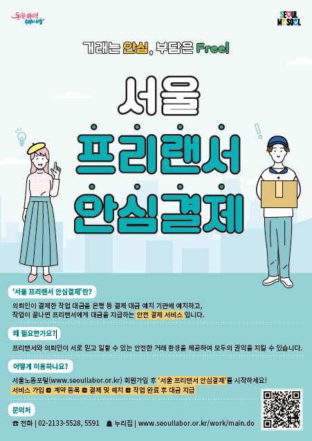 한편 서울시는 이번 ‘프리랜서 안심결제 서비스’ 이용 활성화를 위해 10일 오후 3시 서울시청에서 ‘프리랜서 안심결제 서비스 도입·확산을 위한 업무협약’을 체결한다.