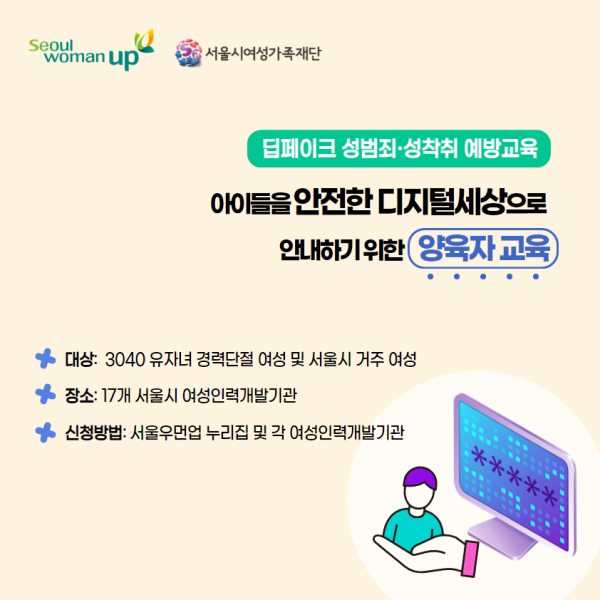서울시여성가족재단은 아동·청소년 자녀를 둔 시민을 대상으로 ‘딥페이크 성범죄 예방 교육’에 들어간다고 밝혔다.