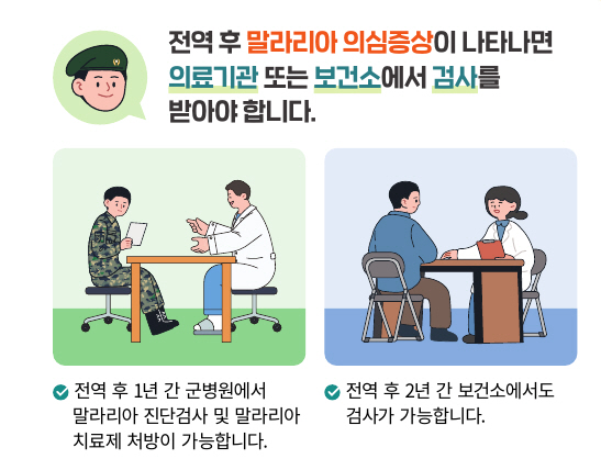 말라리아 의심 증상이 발생하면, 즉시 가까운 의료기관에 방문해 치료받아야 한다.