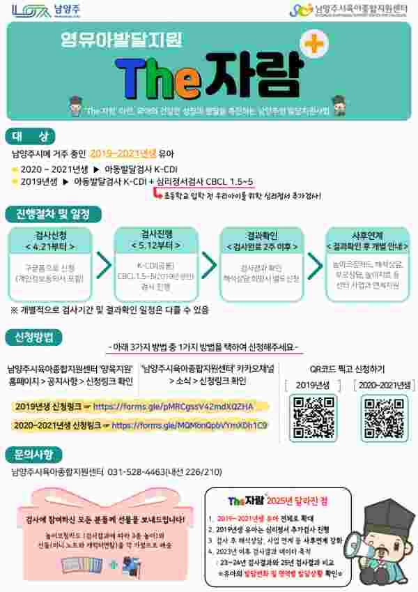 [금요저널] 남양주시는 4월 21일부터 유아의 건강한 성장 지원을 위한 ‘The자람’ 유아발달검사 지원 신청을 받는다.