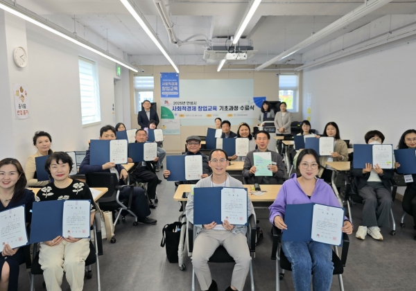 [금요저널] 안성시는 4월 24일 2025년 상반기 사회적경제 창업교육 기초과정을 마무리하고 23명의 수료생에게 수료증을 수여했다.