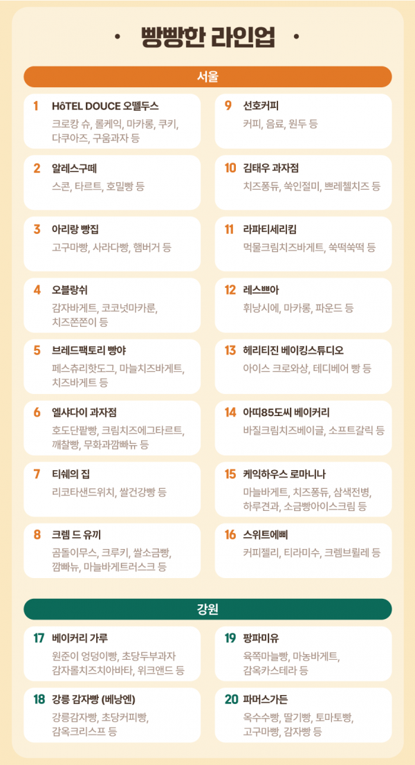 특히 속초의 ‘베이커리 가루’, 강릉의 ‘팡파미유’, 춘천의 ‘파머스가든’ 등 지역 명물 빵집이 참여해 눈길을 끈다.