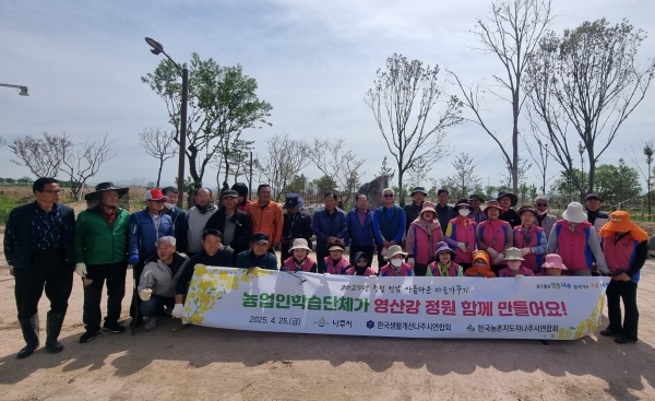 지난 4월 25일 농업인 학습단체인 생활개선회와 농촌지도자회는 합동으로 영산강 정원에서 꽃 심기 행사를 진행했다.