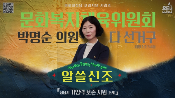 [금요저널] 성남시의회는 ‘알쓸신조-박명순 의원 편’ 영상을 7일 오후 5시 시의회 공식 SNS에 게시한다.