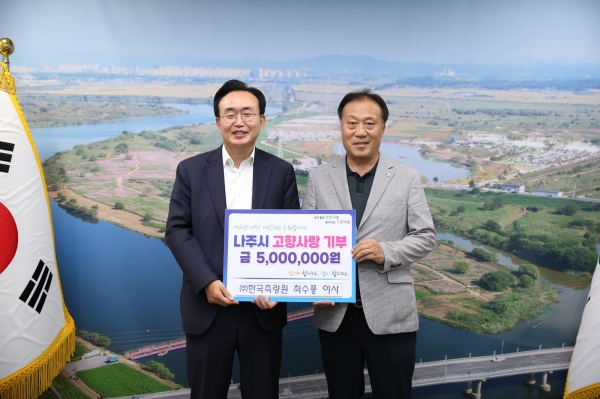 [금요저널] 전라남도 나주시는 ㈜한국측량원 최수풍 이사가 고향사랑기부금 500만원을 기탁했다고 16일 밝혔다.