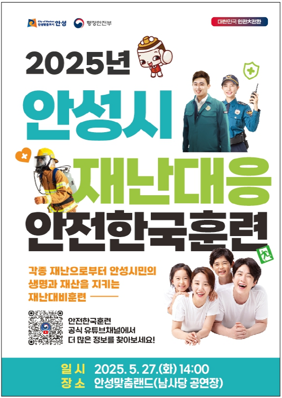 [금요저널] 안성시는 5월 27일 시청 재난종합상황실과 안성맞춤랜드에서 ‘2025년 안성시 재난대응 안전한국훈련’을 실시한다고 밝혔다.