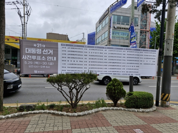 시는 사전투표소 위치를 한눈에 확인할 수 있도록 주요 도로변에 안내 현수막을 설치했다.