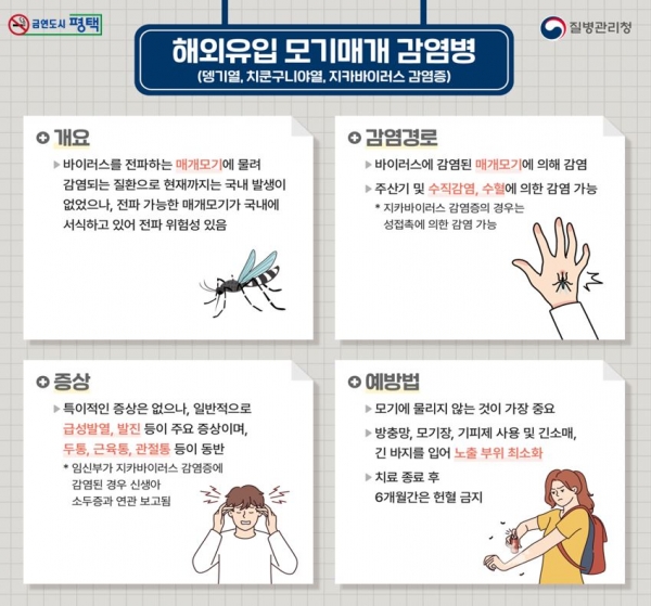 [금요저널] 평택시는 동남아시아를 방문하는 여행객들에게 지카바이러스 감염증 등 모기 매개 감염병에 대한 주의를 당부했다.