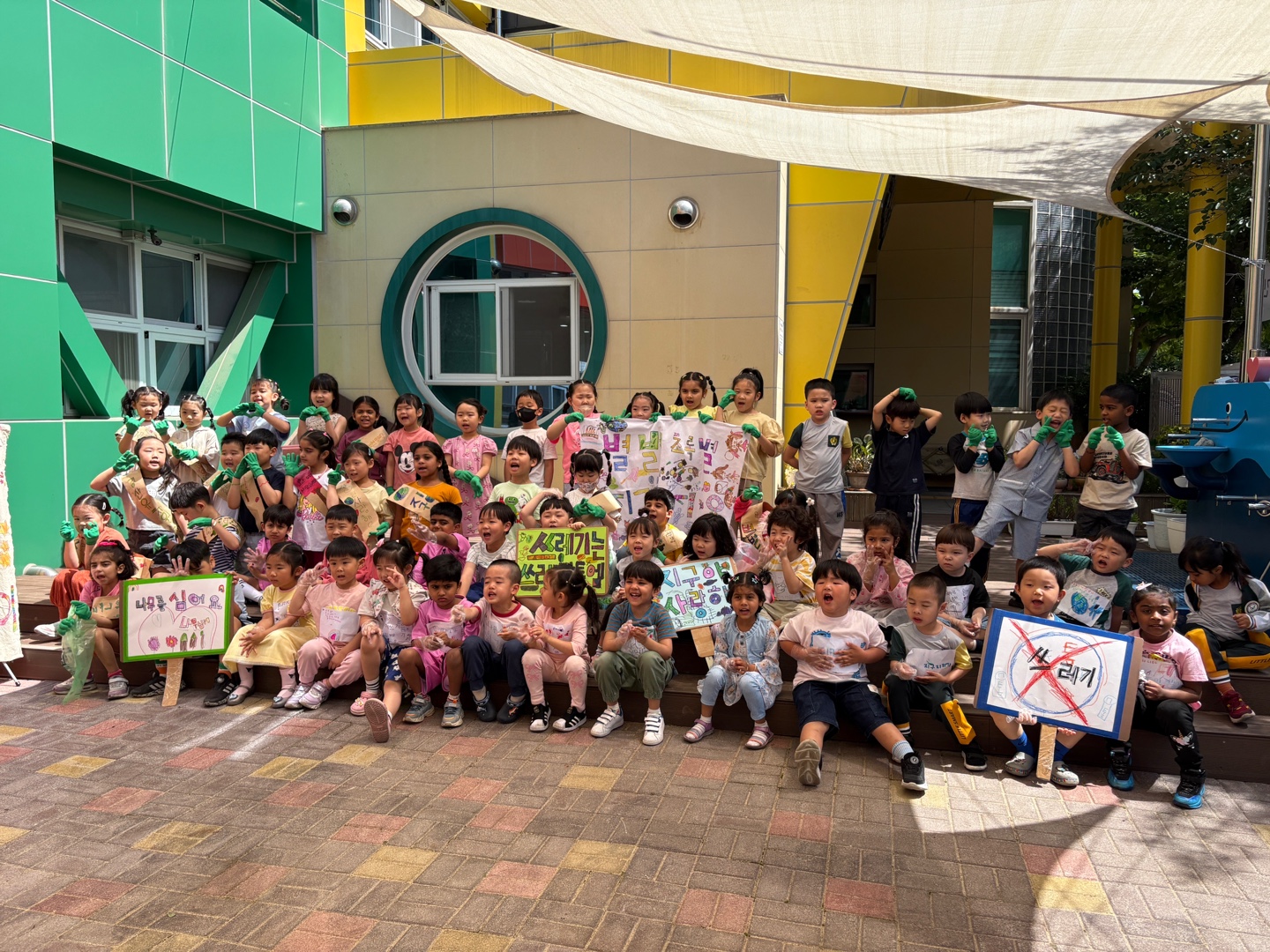 □ 쓰담걷기 캠페인 활동을 하기 전 유아들은 지구를 사랑하는 마음을 글과 그림으로 표현하여 쓰담 캠페인에 활용할 슬로건 포스터를 만드는 사전 활동이 이루어졌다. 유아들은 유치원 주변 공원을 걸으며 봉투에 쓰레기를 주워 담아 올바르게 분리 배출하는 활동을 통해 초록별 지구를 사랑하는 마음을 널리 알리는 환경캠페인을 실시하였다.