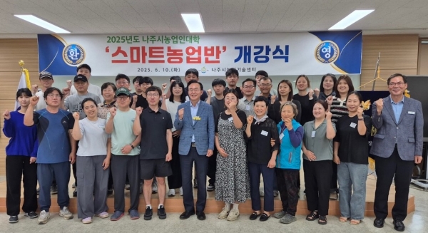 [금요저널] 전라남도 나주시는 6월 10일 나주시농업기술센터 농업인 교육관에서 ‘2025년 나주시농업인대학 스마트농업반’ 개강식을 열고 스마트농업 전문 인력 양성을 위한 본격적인 교육을 시작했다.