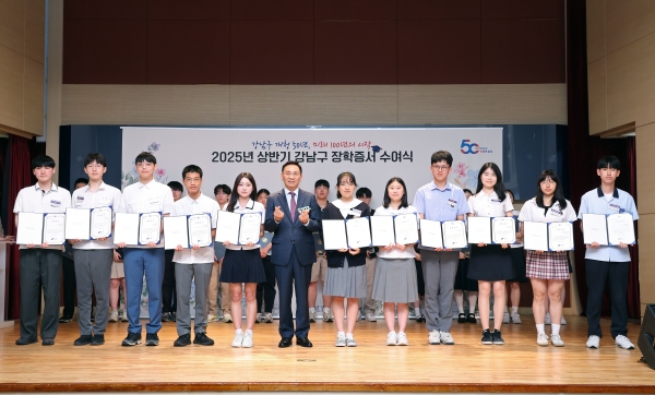 구는 지난 6월 10일 대치2문화센터에서 ‘2025년 상반기 강남구 장학증서 수여식’을 열고 고등학생에게는 100만원, 대학생에게는 200만원의 장학금과 함께 장학증서를 전달했다.