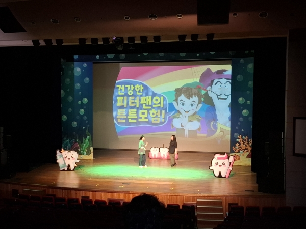 이날 전문극단을 통해 기획한 ‘피터팬의 치아튼튼 모험’ 인형극은 후크선장의 작전에 걸려들어 매일 단 음식을 먹으면서 이도 닦지 않아 충치가 생긴 피터팬과 친구들이 치아건강을 찾아 모험을 떠나는 이야기다.