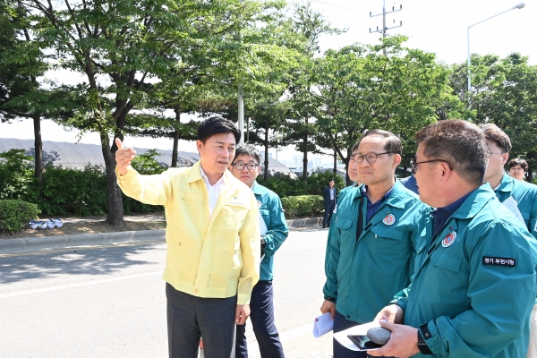 조용익 부천시장은 이어 부천괴안 공공주택지구 조성사업 현장을 찾아 집중호우로 발생한 도로 침수와 토사 유출 피해 상황을 점검했다.