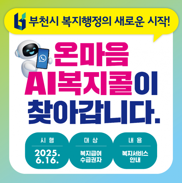 조용익 부천시장은 “‘온마음 AI복지콜’은 맞춤형 복지정보를 시민에게 신속하게 전달하고 정보 격차로 인한 소외를 줄이는 디지털 포용복지의 출발점”이라며 “AI로 먼저 다가가는 복지, 시민이 체감하는 복지를 실현하겠다”고 말했다.