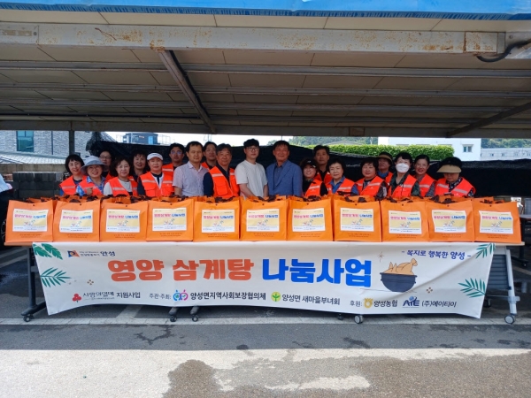 [금요저널] 안성시 양성면지역사회보장협의체는 하절기를 맞이해 지난 12일에 독거노인 및 취약계층 가정 등 105가구에 삼계탕과 반찬, 과일 등을 전달하는 ‘영양 삼계탕 나눔 행사’를 가졌다.