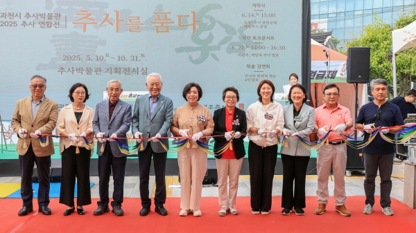 [금요저널] 과천시 추사박물관은 지난 14일 야외마당에서 2025 추사 연합전 ‘추사를 품다’ 개막식을 열고 전국 추사 기관이 함께한 공동기획전의 서막을 알렸다.