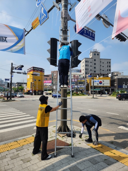 [금요저널] 오산시는 경기도 옥외광고협회 오산시지부와 협력해 시내 곳곳에 방치된 불법 현수막의 끈, 매듭 등 잔여물을 집중적으로 제거하며 쾌적하고 안전한 도시환경 조성에 나섰다.