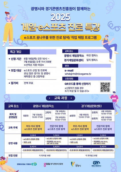 [금요저널] 광명시는 여름방학을 맞아 청소년을 위한 ‘2025년 게임·e스포츠 진로 특강’을 오는 7월 12일부터 9월 13일까지 운영한다.