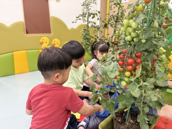 열매와 꽃이 함께 자라는 상태의 방울토마토를 제공함으로써 어린이들이 관찰과 물주기, 수확 등의 과정을 쉽게 접할 수 있도록 구성했다.