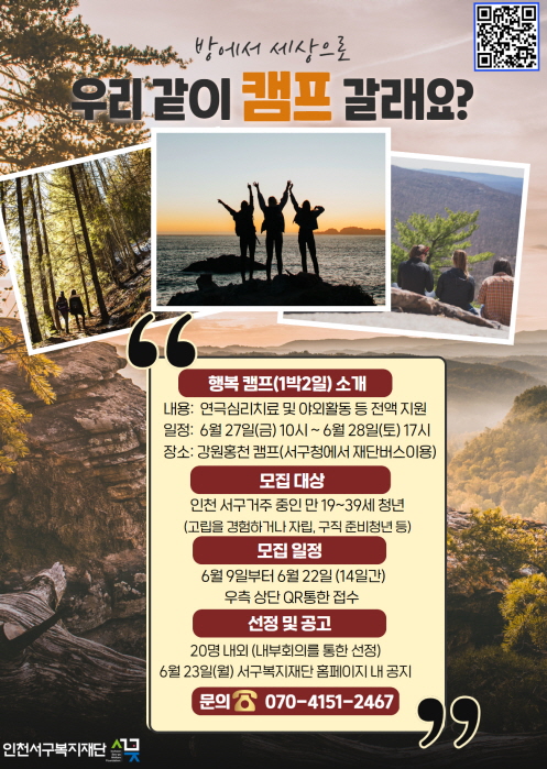 인천서구복지재단, 사회적 고립청년 대상 ‘브릿지 어게인’ 행복캠프 참가자 모집