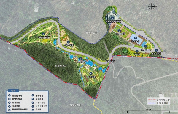 수목원은 환영의 정원, 사계정원, 물빛정원, 자연생태 정원 등으로 조성된다.