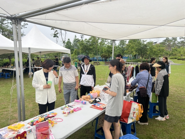 올해 시내권역에서 시범적으로 개최한 장터에는 비가 오는 궂은 날씨에도 불구하고 주변에 아파트 단지로 접근성이 좋아 가족 단위, 학생 등이 가정에서 사용하지 않는 의류 및 물건 판매하는 장똘뱅이로 참여했다.