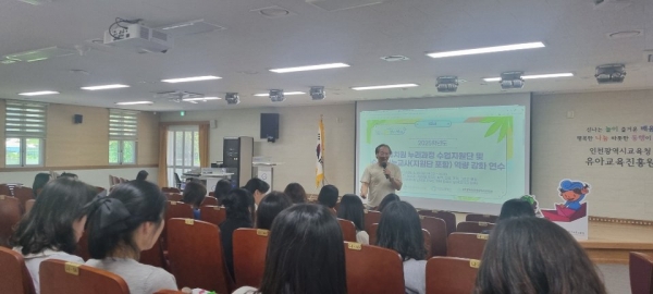 연수에는 고무신학교 조재경 대표가 ‘AI 시대 - 놀이로 키우는 감각, 감정, 기억 그리고 예술’을 주제로 강의하며 유아의 놀이 중심 수업 실현을 위한 교사 역량 강화에 초점을 맞췄다.