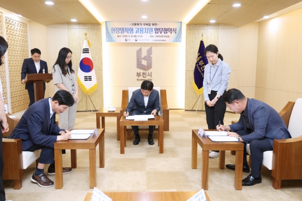[금요저널] 부천시는 지난 23일 고용노동부 부천지청, 부천시테크노파크발전협의회와 함께 ‘현장 밀착형 고용지원 업무협약’을 체결했다.