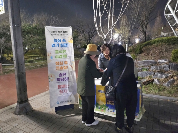 또한, 캠페인 참여 시민을 대상으로 걷기, 영양, 절주, 구강보건 등 비만 예방을 위한 건강 생활 실천 정보를 안내했다.