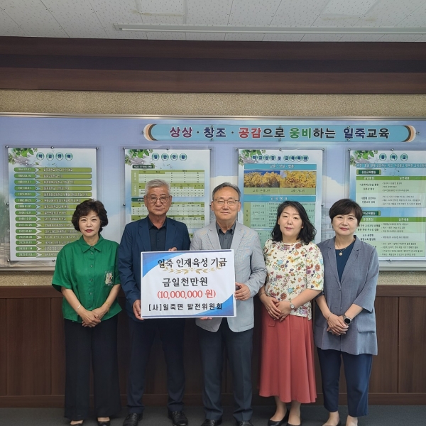 [금요저널] 일죽면 발전위원회는 지난 6월 24일 지역 청소년의 교육환경 개선을 위해 지난해에 이어 올해도 일죽중학교에 1,000만원의 발전기금을 기부했다.