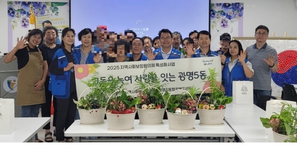 [금요저널] 광명시 광명5동 지역사회보장협의체는 지난 25일 관내 독거 어르신 20명과 함께 ‘고독을 녹여 사랑을 잇는 광명5동’ 이라는 주제로 관엽식물 미니정원 만들기 행사를 진행했다.
