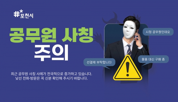 [금요저널] 포천시는 최근 시청 공무원으로 속여 물품 구매를 시도하는 사기 사례가 발생했다며 시민과 관내 업체에 각별한 주의를 당부했다.