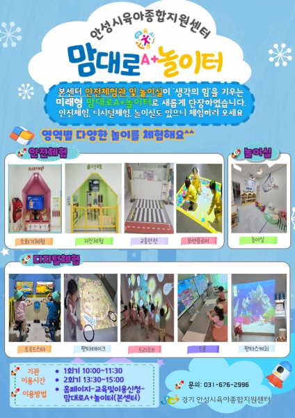 [금요저널] 안성시는 안성시육아종합지원센터 안전체험관에 첨단 디지털 기술을 접목한 ‘맘대로 A 디지털 놀이터’를 오는 7월부터 본격적으로 운영한다.