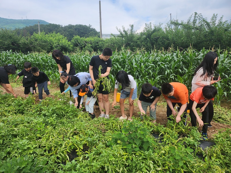 □ 평소 교실에서 활동에 관심이 없이 소극적이던 1학년 최○○학생도 감자캐기 활동에 적극적으로 참여하며 조리 과정에서도 스스로 해보고자 하는 모습을 보였다.