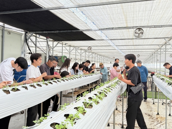 견학 대상지는 △신읍동 ‘아쿠아스마트팜’ △군내면 ‘울미연꽃마을’ △소흘읍 ‘아딸농원’ 으로 각 농장의 특화된 운영 방식과 체험 콘텐츠를 중심으로 교육이 이뤄졌다.