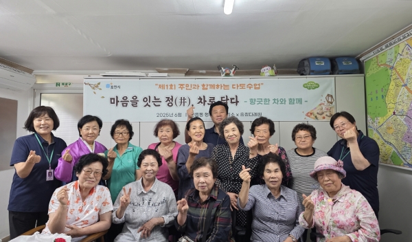 [금요저널] 포천시 신읍동 행복마을관리소는 지난 26일 어르신에게 정서적 안정과 전통문화 체험의 기회를 제공하기 위해 ‘마음을 잇는 정, 차로 담다 – 향긋한 차와 함께’라는 주제로 첫 다도 수업을 진행했다.