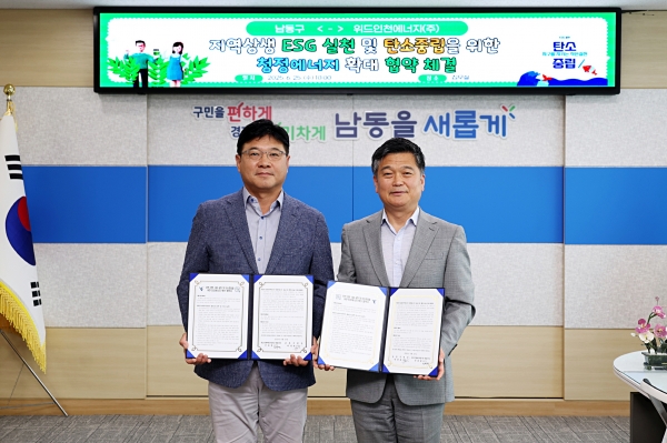 [금요저널] 인천시 남동구는 구청장 집무실에서 위드인천에너지 주식회사와 ‘지역상생 ESG 실천 및 탄소중립을 위한 청정에너지 확대 협약’을 체결했다고 27일 밝혔다.
