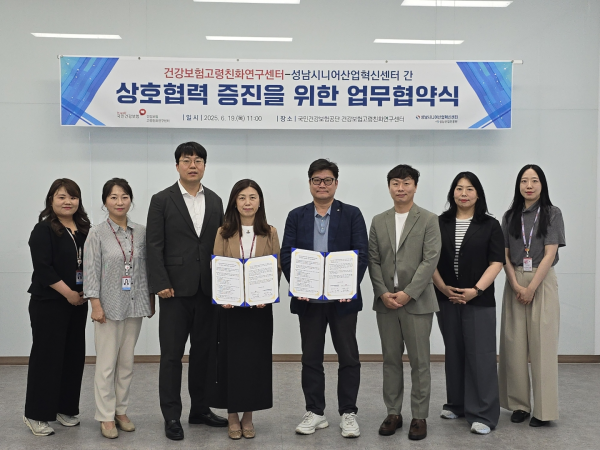 [금요저널] 성남산업진흥원 성남시니어산업혁신센터는 이번 6월 국민건강보험공단 건강보험고령친화연구센터를 방문해 ‘고령친화 산업 발전 및 협력 강화를 위한 업무협약을 체결했다고 밝혔다.