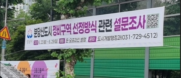 28일 성남시에 따르면 논란이 되고 있는 2차 정비예정구역 선정 방식, 추가 공공기여 문제 등에 대한 방향을 결정하기 위해 지난 23일부터 분당 전체 주민을 대상으로 설문조사를 실시하고 있다.