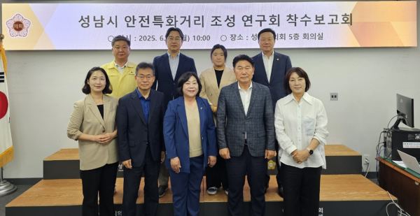 ‘성남시 안전특화거리 조성 및 개선 방안’을 주제로 진행되는 해당 연구 착수보고회는 연구 추진 방향과 활용 계획이 공유됐으며 참석한 의원들은 이번 연구가 안전특화거리 조성을 위한 정책 기반이 될 것이라는 기대감을 드러냈다.