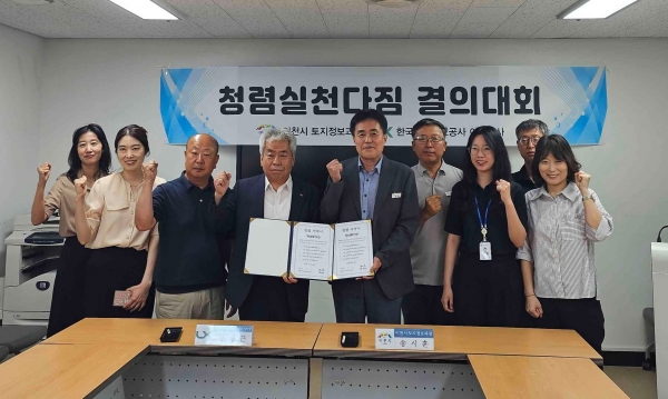 [금요저널] 이천시 토지정보과는 6월 30일 청렴한 공직문화를 실천·확산하고자 지적업무 유관기관인 한국국토정보공사 이천지사와 함께 ‘청렴실천다짐 결의대회’를 추진했다.