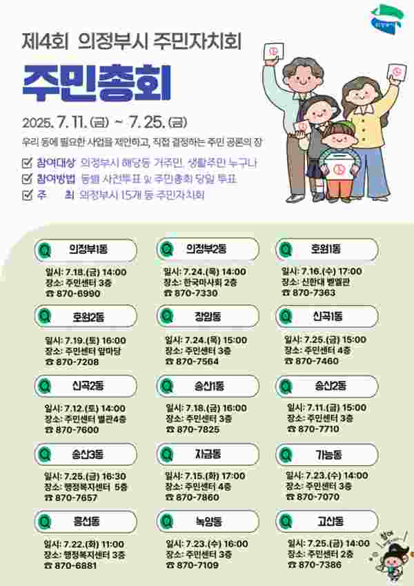 [금요저널] 의정부시는 7월 11일부터 25일까지 15개 동 주민자치회 주최로 ‘주민총회’를 개최한다.